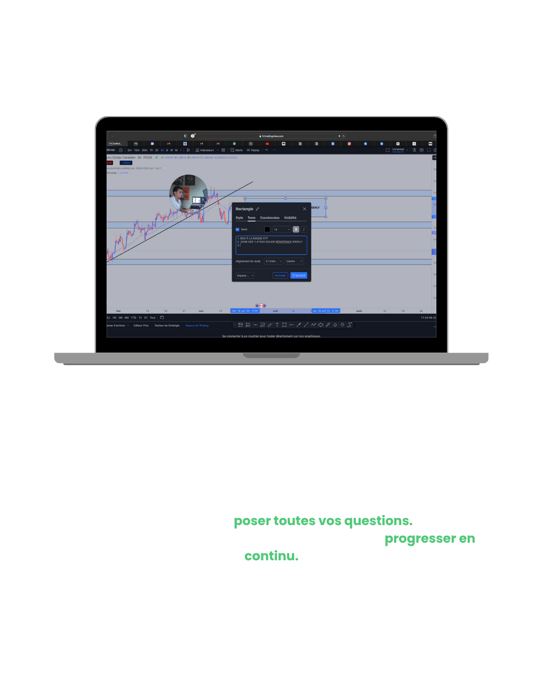 Apprends à entrer au bon moment, ajuster ta taille de position, protéger ton capital et clÎturer intelligemment.